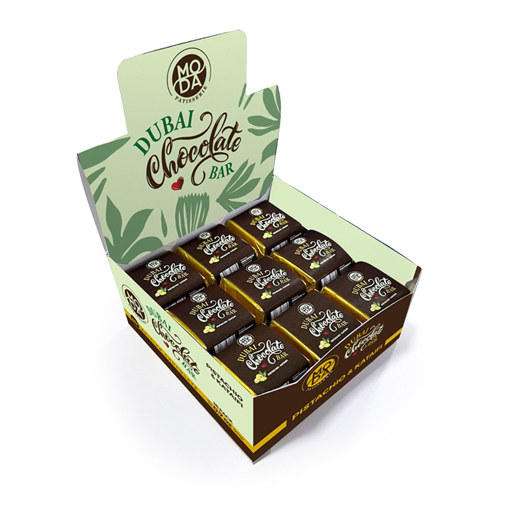 Our dessert bar collection features a rich variety of flavors crafted with premium ingredients—from luxurious Dubai-style chocolate bars to crunchy Pistachio–Kataifi blends, smooth Tahini Paste creations, fruity Mango–Tutti Frutti bites, and classic Hazelnut delights.