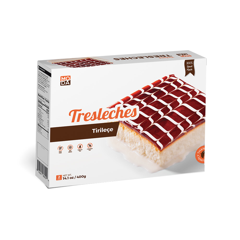 Tres Leches, known as Trileçe in Turkish, is a soft sponge cake soaked in a rich blend of three milks for an ultra-moist and creamy texture.